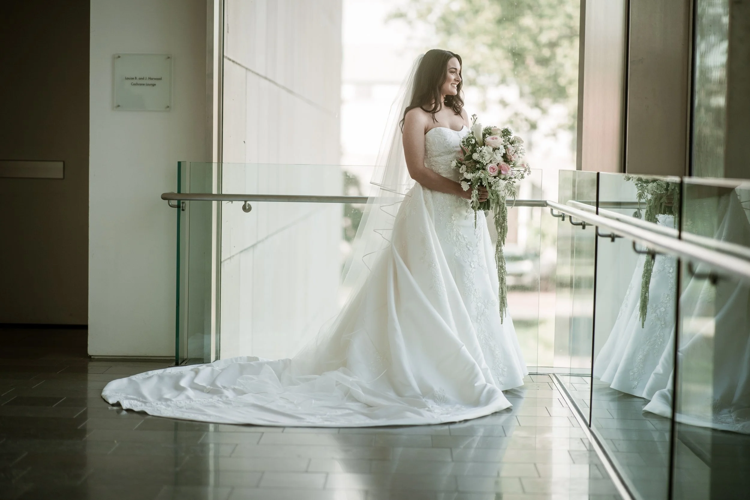 Staircase decor home wedding with whites and pink roses in Williamsburg